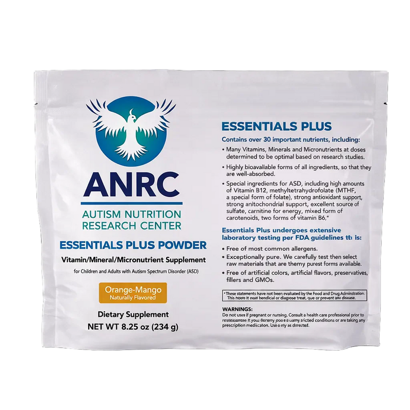 Az ANRC Essentials Plus egy vitamin/ásványianyag-kiegészítő továbbfejlesztett változata, amelyről az Arizona State University (ASU) randomizált, kettős vak, placebo-kontrollos kutatása során kimutatták, hogy nagymértékben javítja az autista gyermekek és felnőttek tápláltsági állapotát. Link a tanulmányhoz – https://www.ncbi.nlm.nih.gov/pmc/articles/PMC5872787/